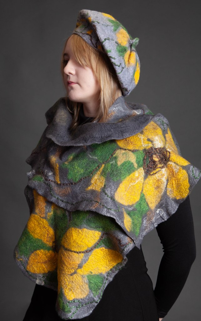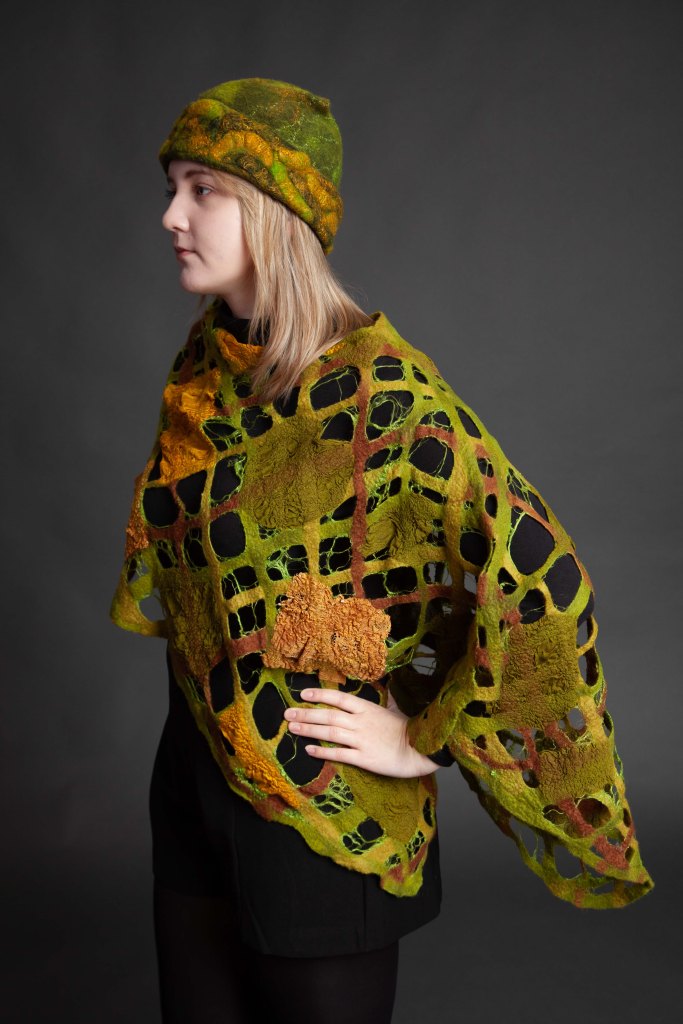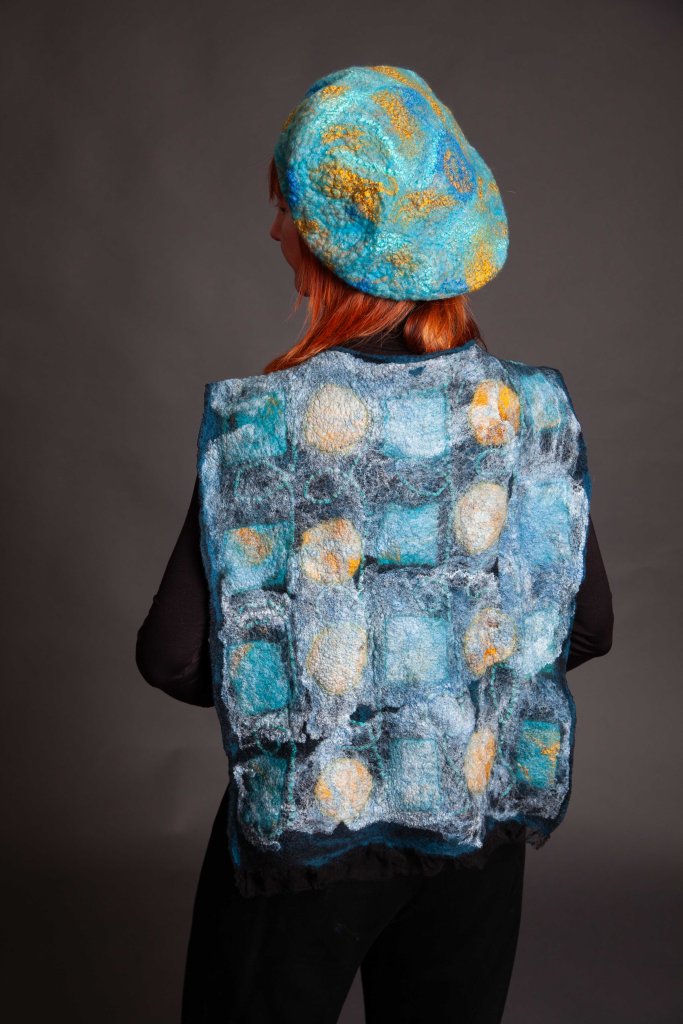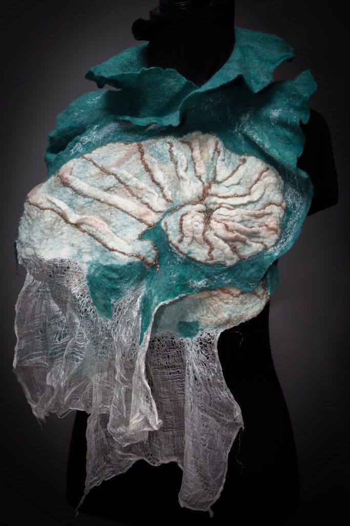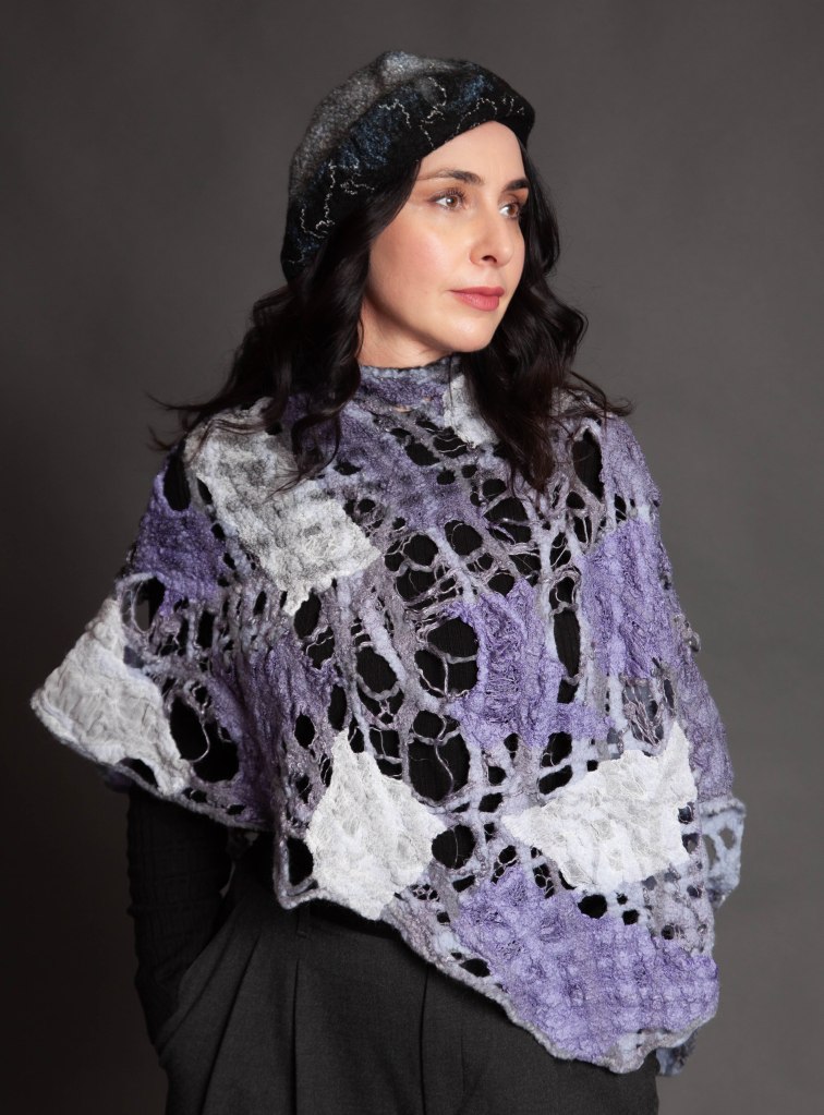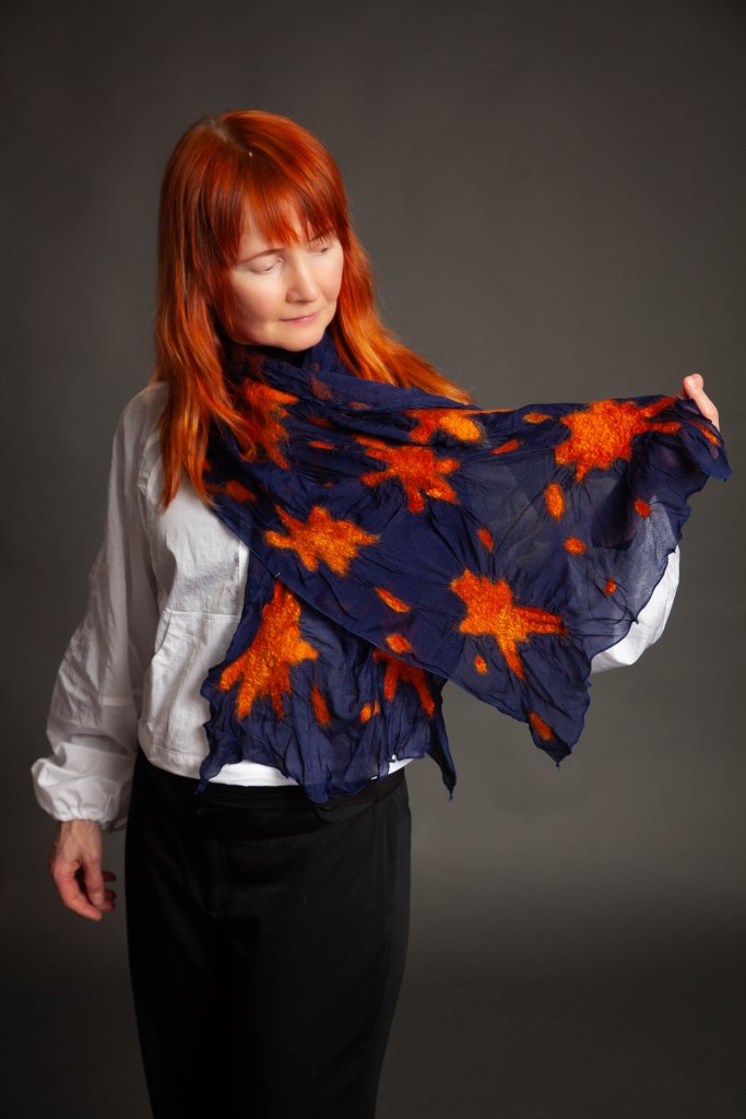 Original, one-of-a-kind textile artworks crafted from merino wool and silk. Eco-printed botanicals and traditional felting methods, handmade with care.